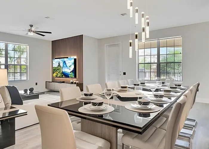 Guests can make use of an equipped kitchen, as well as a dining area at the villa. There is also an electric kettle, a refrigerator, and kitchenware to prepare your own meal. Luxo No Vista Cay | 4 Quartos Perto Da Universal villa is in the vicinity of fast food restaurant 18 Monroe Street Market. This accommodation is just 200 m from Universal Boulevard and South Kirkman Road bus stop and a 30-minute ride from Church Street train station.